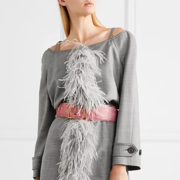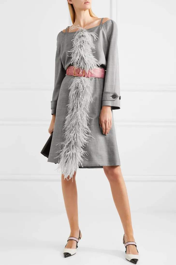 Openingsfoto: grijze jurk van Prada (Net-a-porter € 2400)
