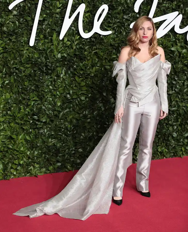 Niomi Smart in grijs op de rode loper.