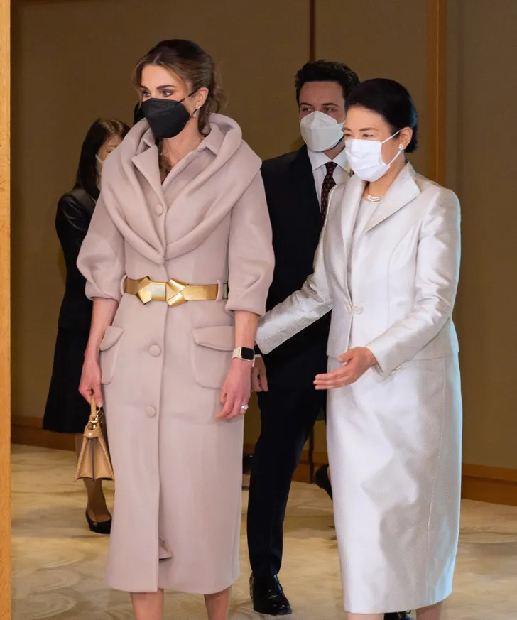 Mohamed, hier met Sheikha Moza bint Nasser van Qatar, werkt vrij intuïtief en drapeert stof om iemands lijf om te zien waar de belijning moet zitten. "Een organisch proces", noemt Benchellal het zelf. "Ik weet van tevoren nooit wat ik maak. Het ontstaat door te doen. Ontwerpen is voor mij net als ademhalen, ik hoef er niet erg over na te denken."