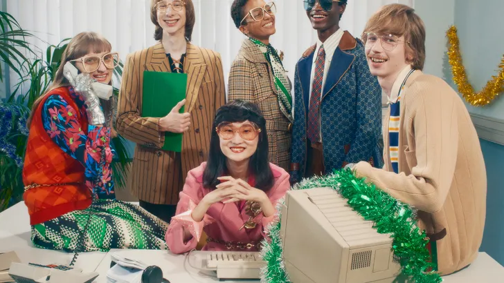 Omdat er dit jaar in december geen office party's of kerstlunches zullen worden gehouden, besloot Gucci's creative director Alessandro Michele Gucci's kerstcampagne in Debiteuren Crediteuren 1990's sfeer te laten fotograferen, compleet met ongemakkelijke momentjes.