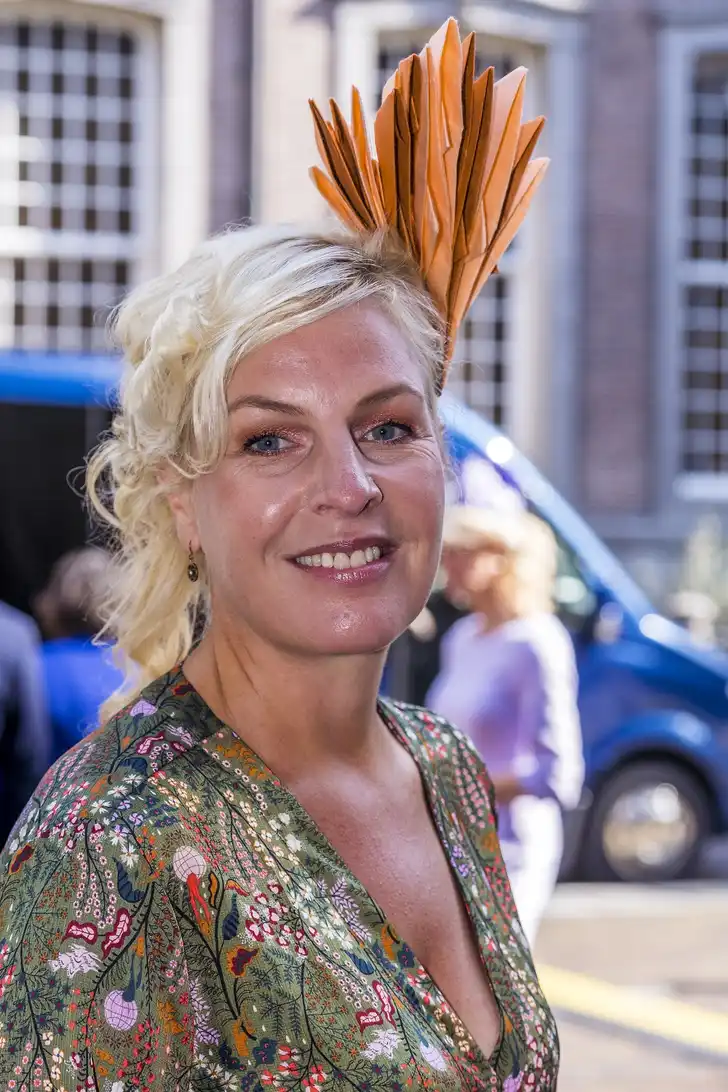 Esther Ouwehand rukte uit met een statementhoed van hout.