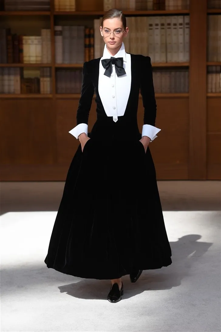 En ook Virginie Viard van Chanel liet zich niet onbetuigd waar het aankwam op zwart-wit-en-klassiek.