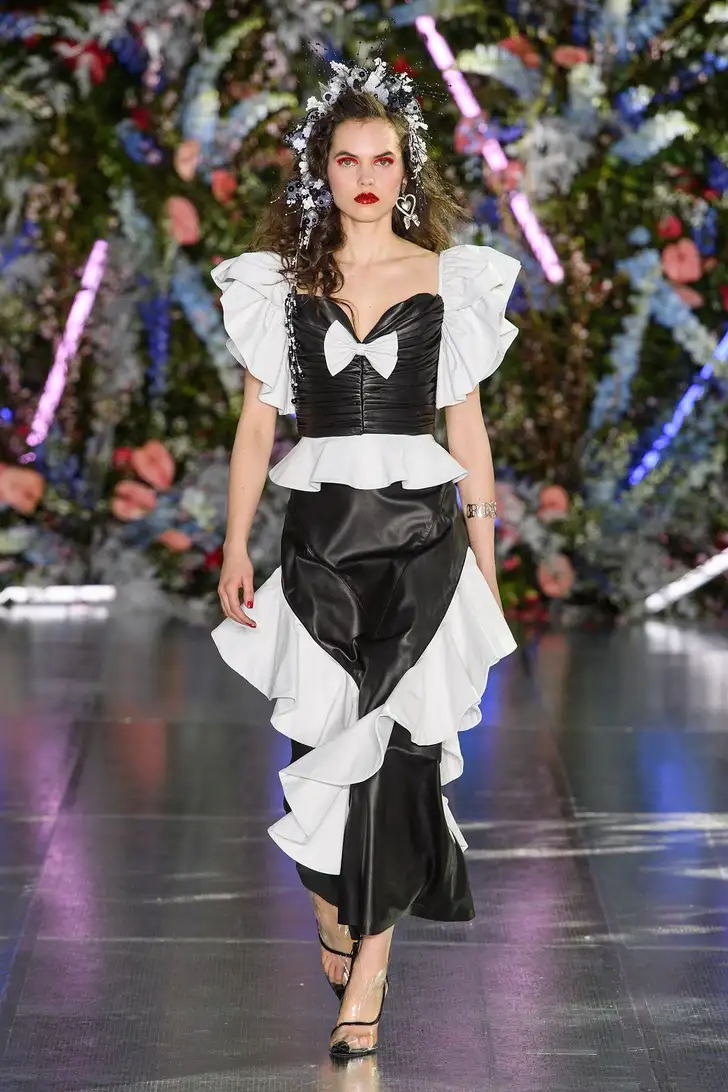 De Gezusters Mulleavy van Rodarte speelden met zwart, wit en Victoriaanse volants en ruches.