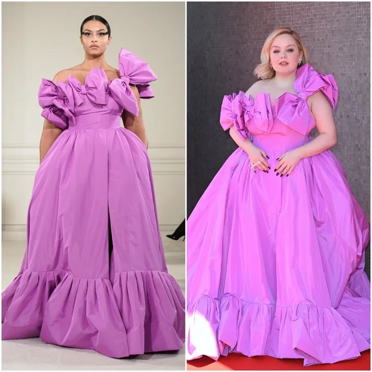 Er zijn er labels die dit graag zo willen houden. Maar soms staat er bij een luxe modehuis iemand aan het roer die bewijst dat couture voor iedereen is, ongeacht je bodytype. Hulde aan Pierpaolo Piccioli van Valentino die voor Nicola deze roze droom in tafzijde op maat maakte. Het ontwerp komt uit de S/S 2022 en je ziet dat het beide vrouwen prachtig staat.