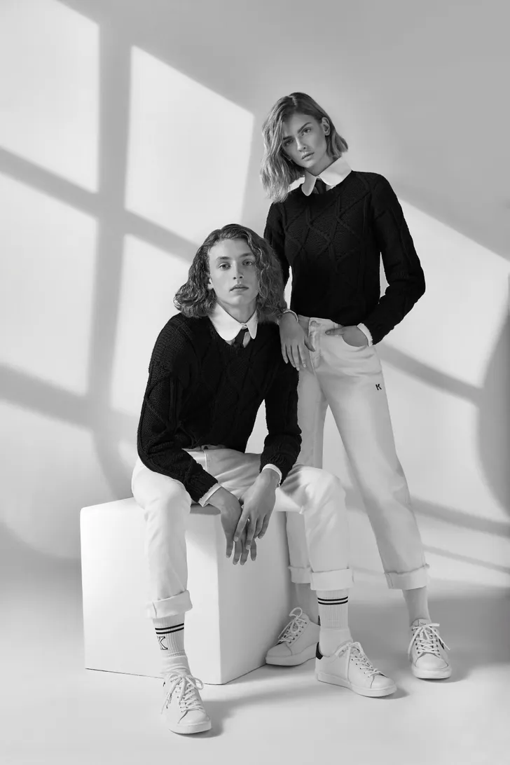 Karl Lagerfeld (hier helemaal links) won in 1954 de prestigieuze Woolmark Prize toen hij amper 21 jaar was en was in 2018 meteen in voor een samenwerking. "Karl’s eerste creatie ooit was voor de Woolmark Prijs in 1954, daarom voelt het vanzelfsprekend om zijn leven te eren met deze samenwerking", legt Caroline Lebar, Head of Image en Communications bij Karl Lagerfelds label, uit.