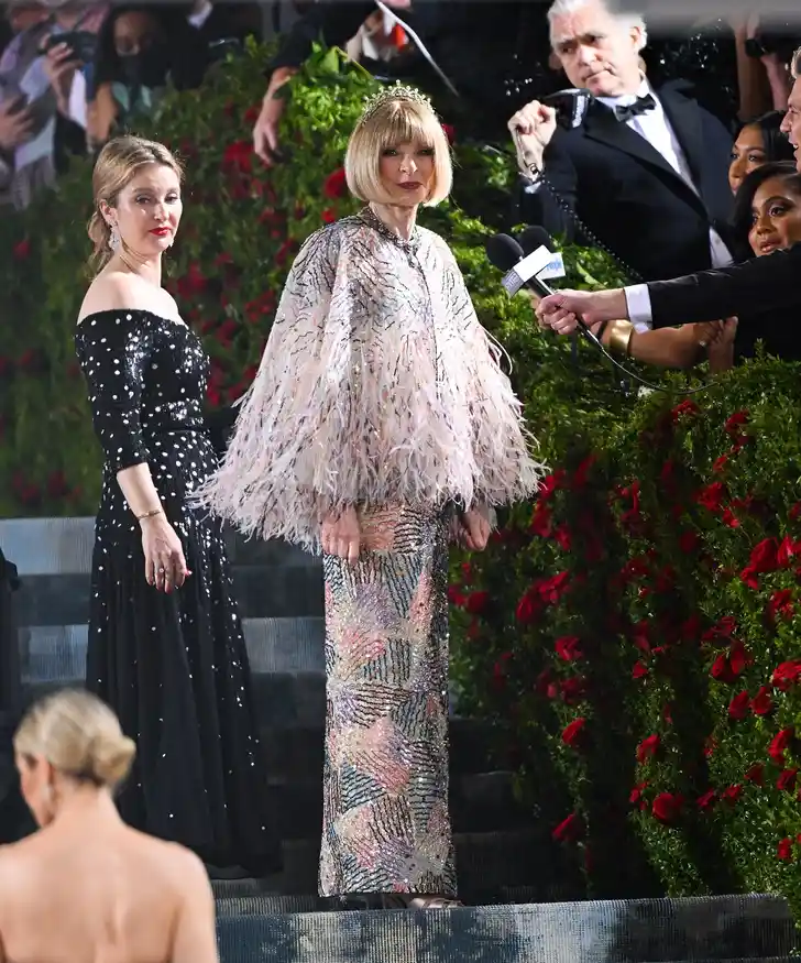 Anna Wintour, drijvende kracht en organisator van het Gala, verscheen koninklijk, met een tiara en een pélerine.