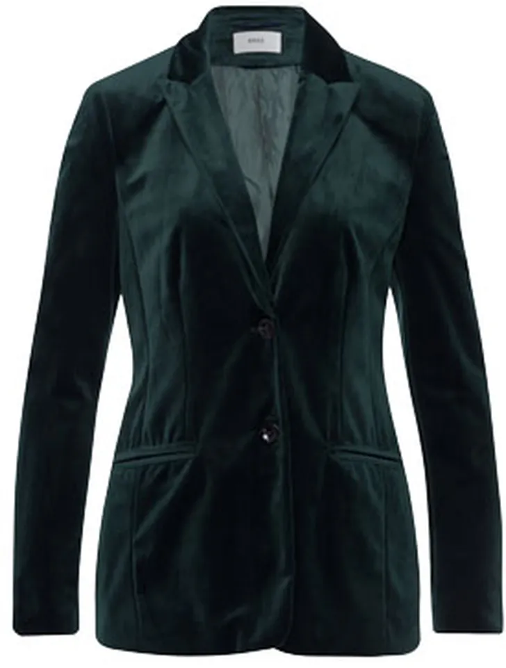 Draag, zoals Farrah, een uitgesproken colbert. Deze fluwelen bijvoorbeeld, verveelt nooit.