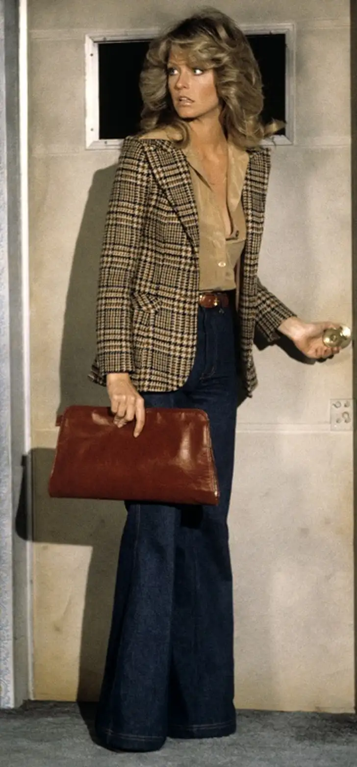 Farrah Fawcett geeft hier het goede stijlvoorbeeld