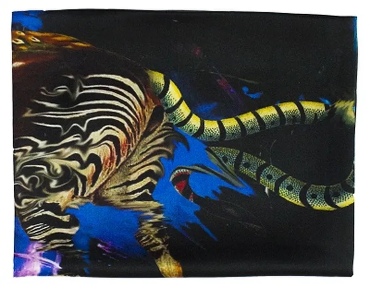 De designers ontwikkelden voor de print hun eigen moderne en persoonlijke chimaera’s; een mythisch wezen dat bestaat uit onderdelen van verschillende dieren die samen een prachtig en intrigerend wezen vormen. De chimaera’s op de sjaal staan symbool voor de designers die als collectief samenwerken.