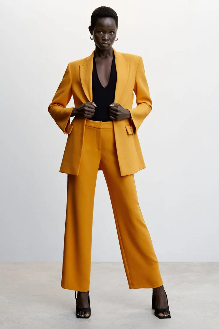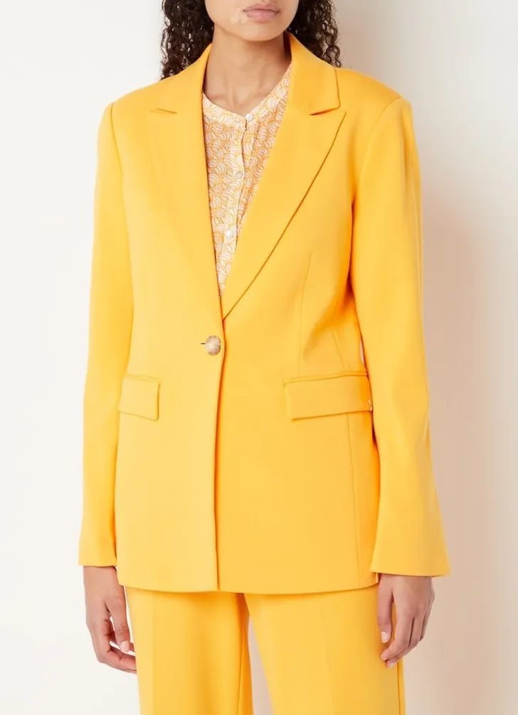 Zo'n opvallend jasje is een prima alternatief als je een felgekleurd powerpak wat teveel van het goede vindt.