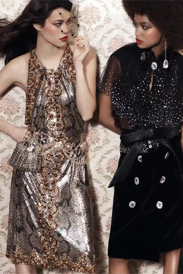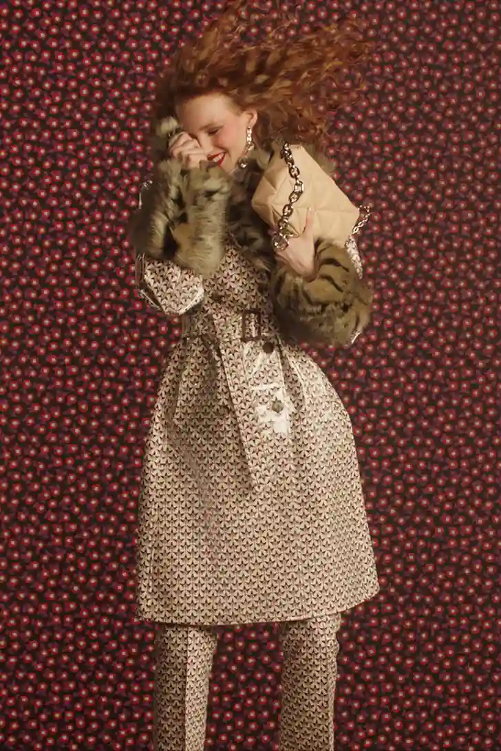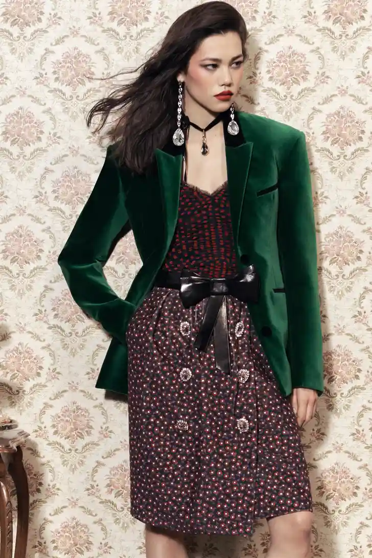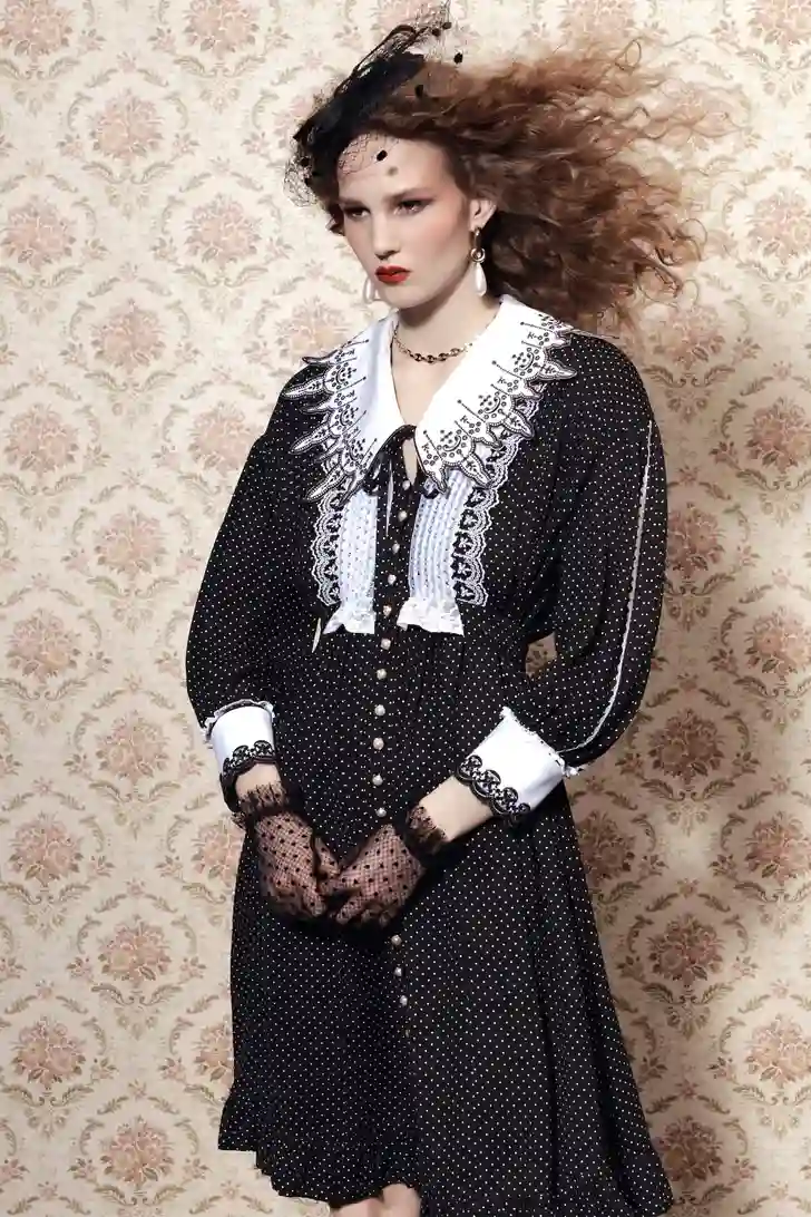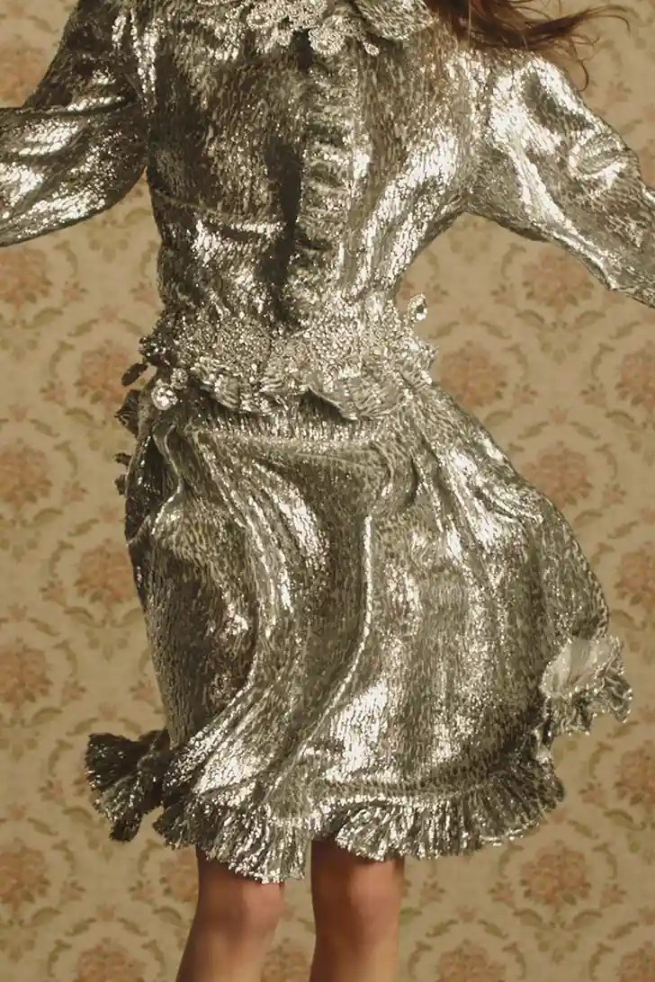 "Het mooie aan fashion is dat we kleren laten zien voor over een half jaar," zegt creative director Julien Dossena, die ook een vleugje The Crown in de collectie mengde. "Ik hoop dat het leven over zes maanden één groot feest zal zijn en dat iedereen er dagen- en nachtenlang op uitgaat. In het atelier hadden we het erover hoe de lockdowns voelen alsof je weer een tiener bent en van je ouders niet mag gaan stappen. En dat je je dan gaat verkleden met de kleren van je ouders – die vreugde, die lol."
