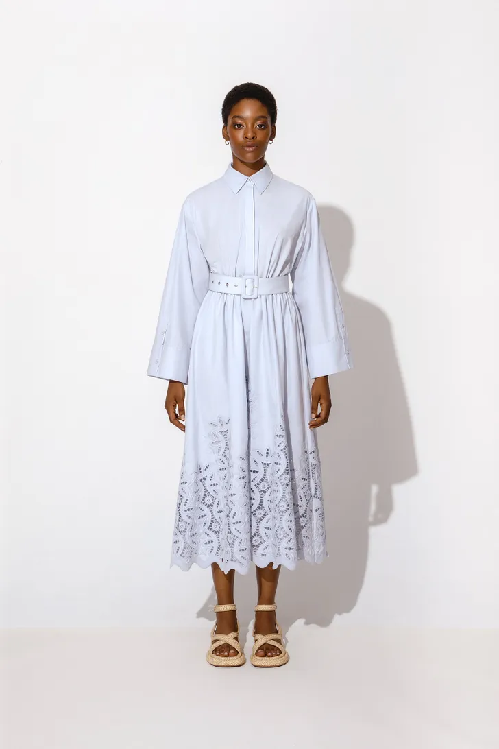 De Nia Midi is een redelijk eenvoudige shirtdress, van dunne katoen, met aan de onderkant kant. Niet te zoet, wel een beetje romantisch (Victoria being Victoria) en gewoon te koop voor € 325.
