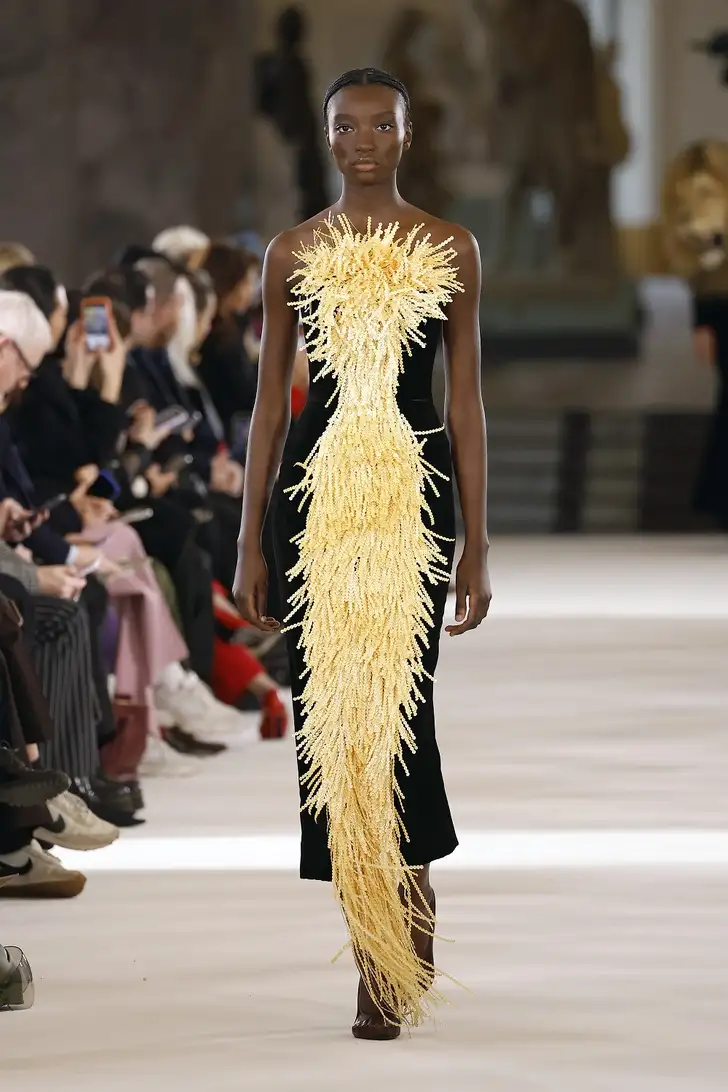 Voor de haute couture collectie van S/S 2023 pakte Roseberry spraakmakend als altijd uit. Haute couture hóórt uit te dagen en een beetje OTT te zijn, hij speelt als geen ander met vormen en silhouetten. Zo is haute strapless de komende maanden helemaal hip.