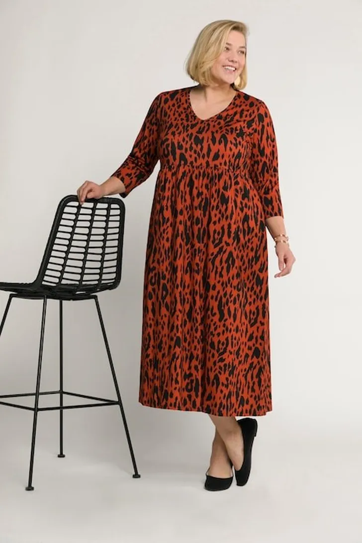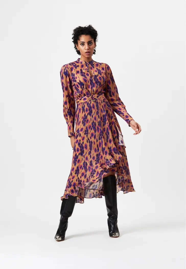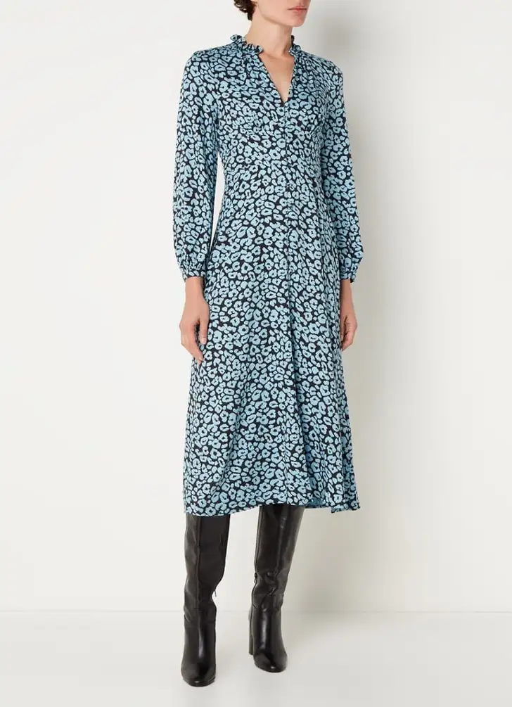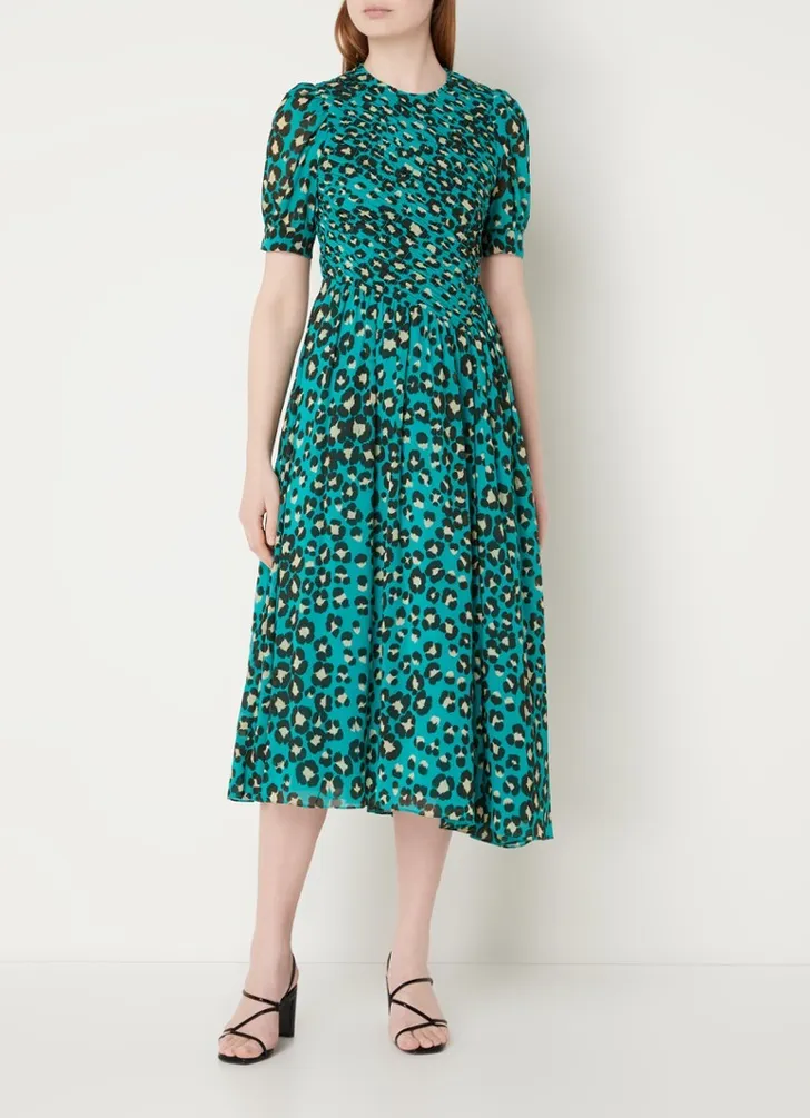Midi blousejurk met panterprint en strikceintuur, French Connection € 105