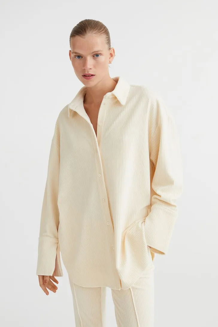 Ribfluwelen blouse in roomwit van H&M € 40
