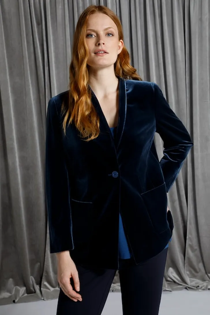 Blazer in blauw fluweel tot en met maat 56 € 229