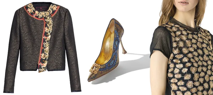 De klassieke trend. Zo komt het handgemaakte aspect naar voren als een brocante en royale look. Gemengd met een gouden glans en grote juwelen is deze stijl tijdloos en vol luxe.