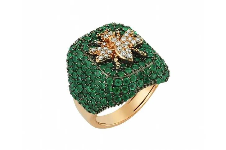 Ring met diamanten en smaragden voor een Queen Bee (Bee Goddess, prijs op aanvraag)