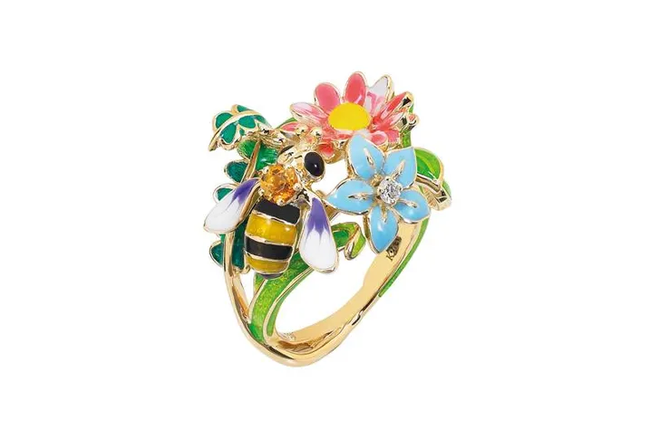 Bloemetjes, bijtjes, goud en email (Dior Joaillerie € 5432)
