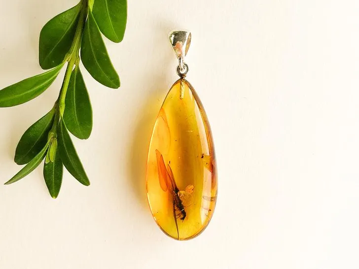 Barnstenen hanger met insect (Amber by Torvela € 55)
