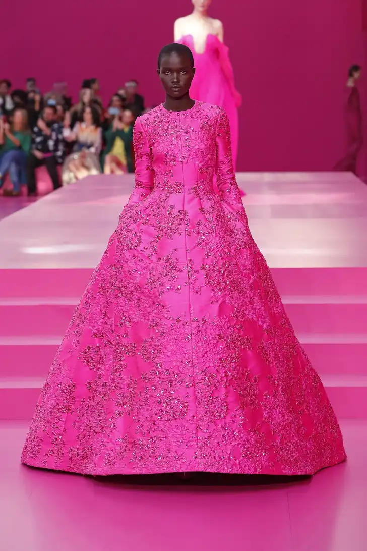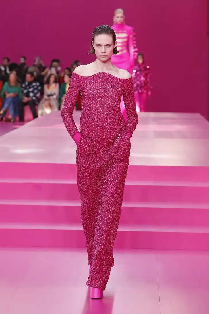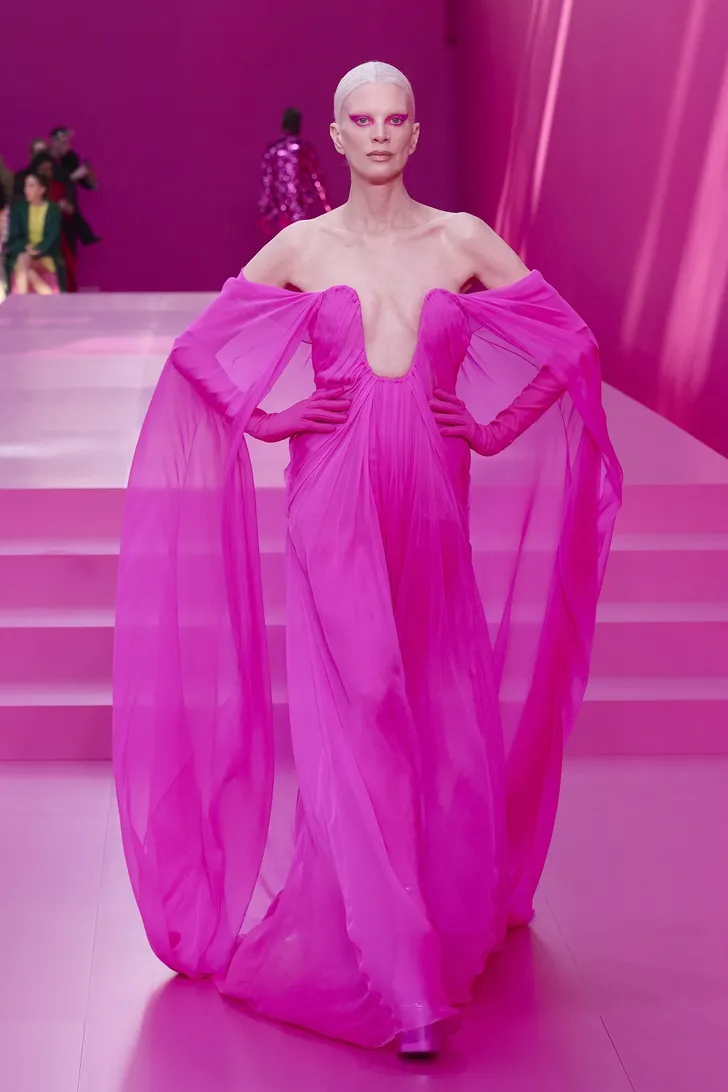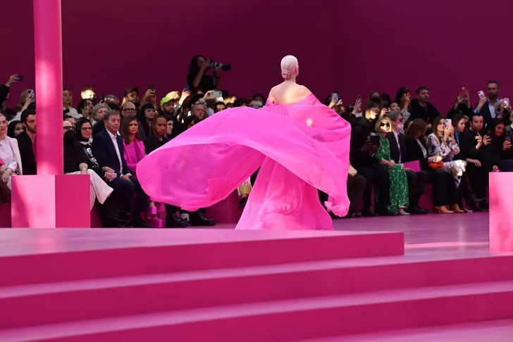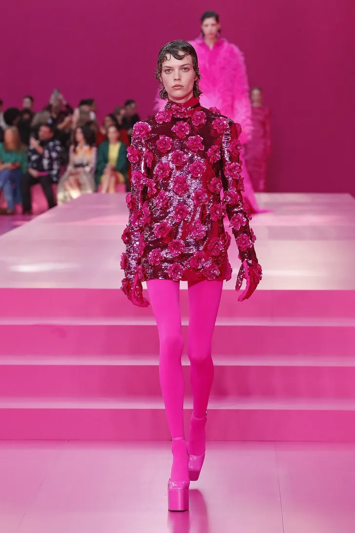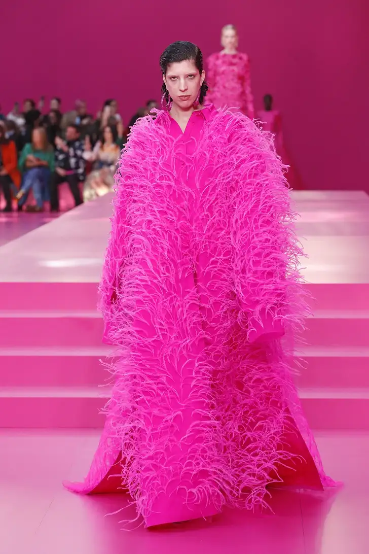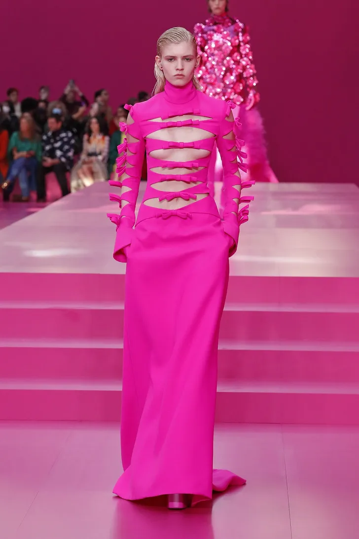 'Wat nou, Very Peri?' moet Pierpaolo Piccioli van Valentino hebben gedacht. 'Ik ga voor een volledige pink-out.' En voegde de daad bij het woord in zijn vrij spectaculaire AW 2022 collectie...