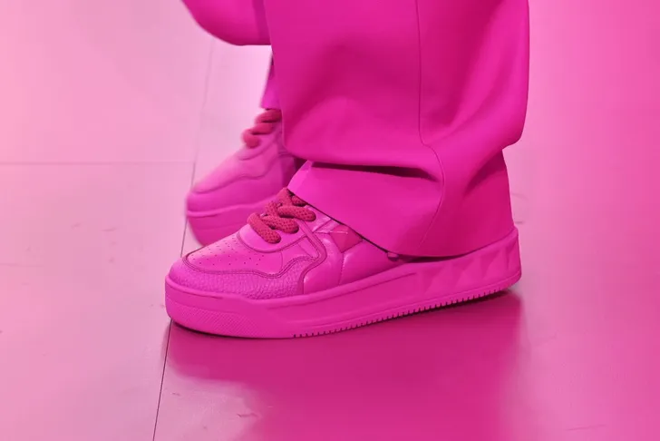 De felroze sneakers die te zien waren lokken meer...