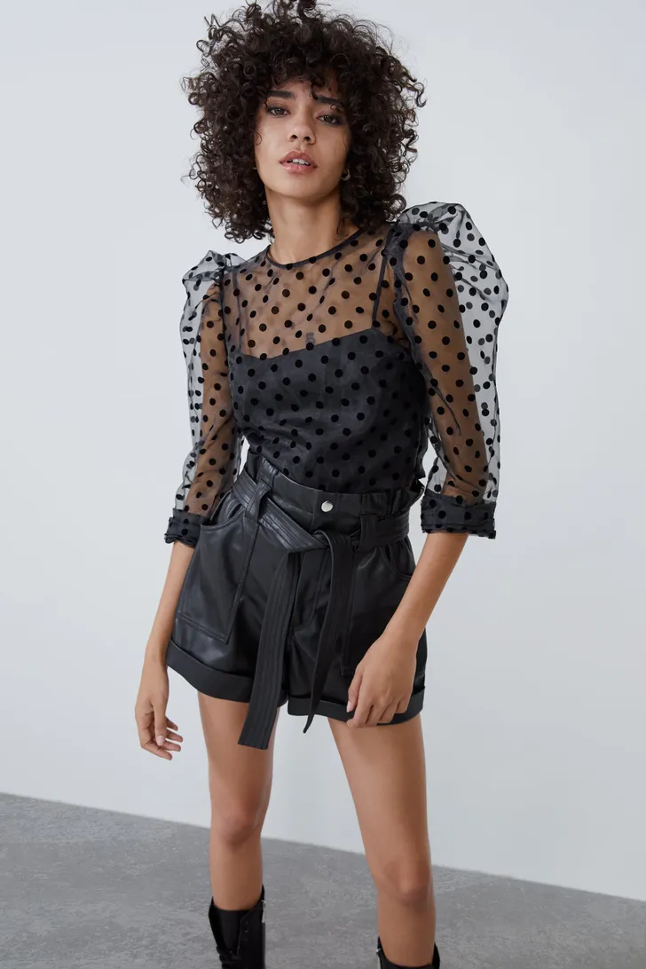 Kunstleren shorts met hoge taille en opzetzakken (Zara € 10)