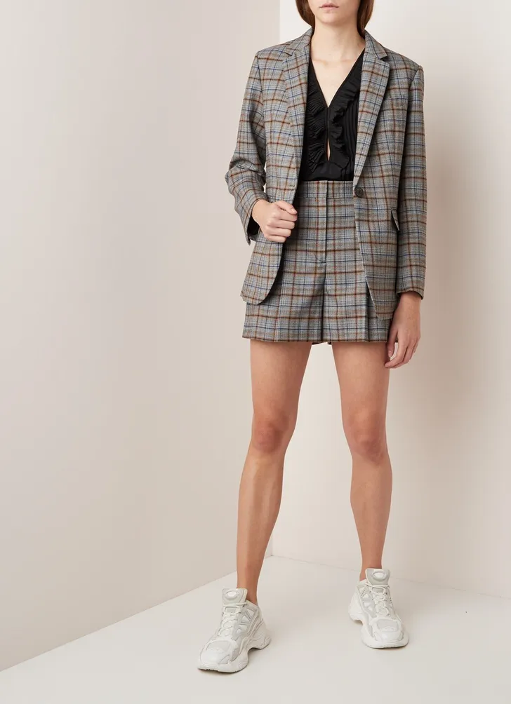High waist loose fit shorts met ruitdessin in wolblend van Sandro (Bijenkorf € 83)