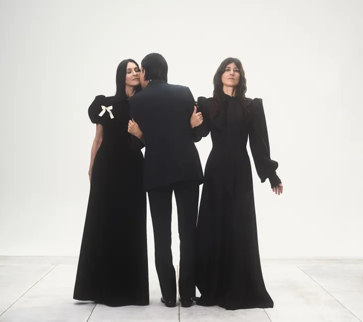En wie ís The Vampire's Wife nu eigenlijk? Suzie (links) werkte jaren als model voor ze in 2016 haar eigen label oprichtte. Ze is getrouwd met rocker Nick Cave (midden), ook bekend als de Vampier, vanwege zijn bleke teint en voorkeur voor nachtbraken. De vrouw rechts is Suzie's BFF Bella Freud.