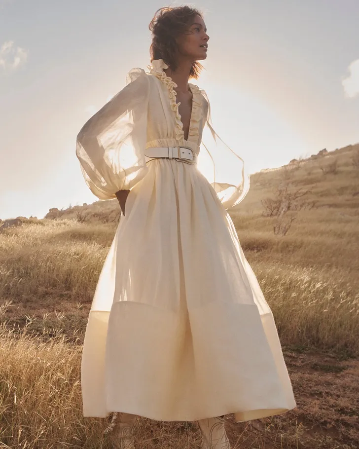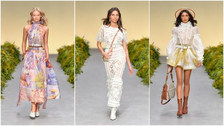 De Zimmermann-collectie van S/S 2021 heet Wild Botanica, naar de inheemse flora en fauna van haar vaderland Australië. Bloemen, vogels, luchtige maxi-jurken, 3D bloemen appliqués - je zou willen dat het al juli was.