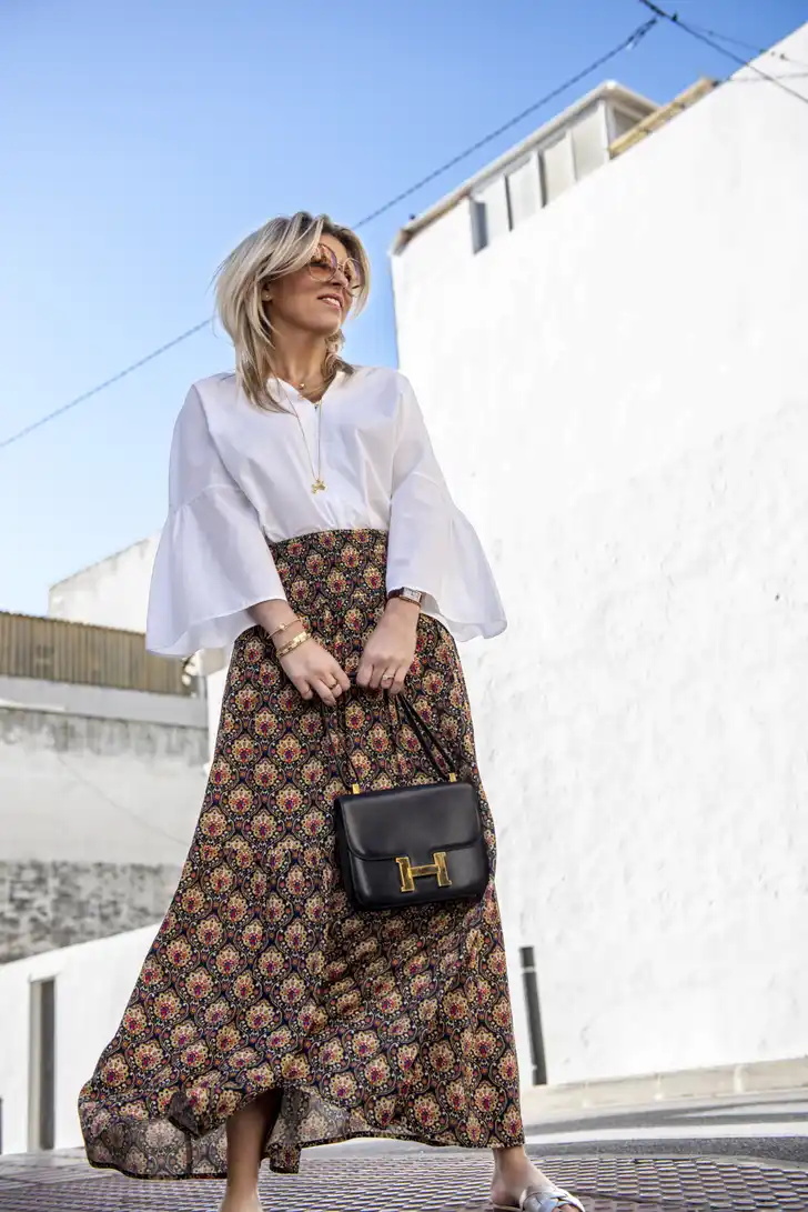 "Naast de Jaipur jurk zijn ook de twee maxi rokken favoriet," zegt Lonneke. "Want met een maxi rok kun je heel veel kanten uit. Combineer hem bijvoorbeeld met een slipper en de witte oversized blouse uit dezelfde collectie voor een ultra vrouwelijke look.