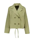 Deze groene short-trench heeft alles wat je van een klassieker verwacht: een rij dubbele knopen, een stevige finish en een frisse kleur die overal bij past. Dankzij de striksluiting onderaan geef je hem gemakkelijk een sportieve of juist getailleerde look.