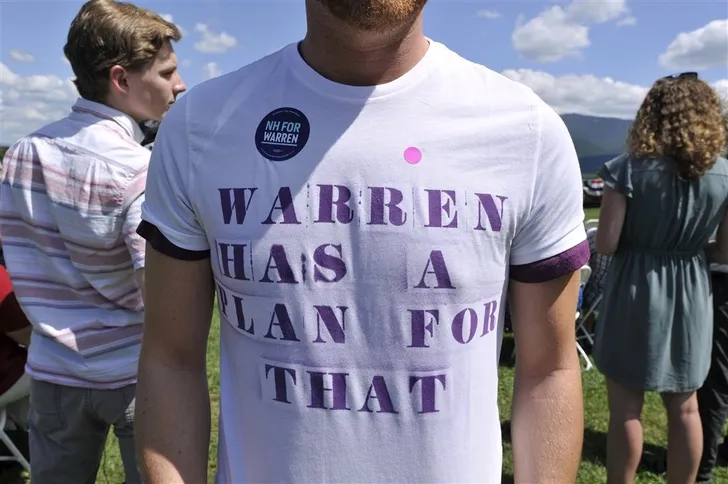 ...en ze heeft ongekend momentum: 'Warren has a plan for that' is een populaire T-shirt kreet geworden.