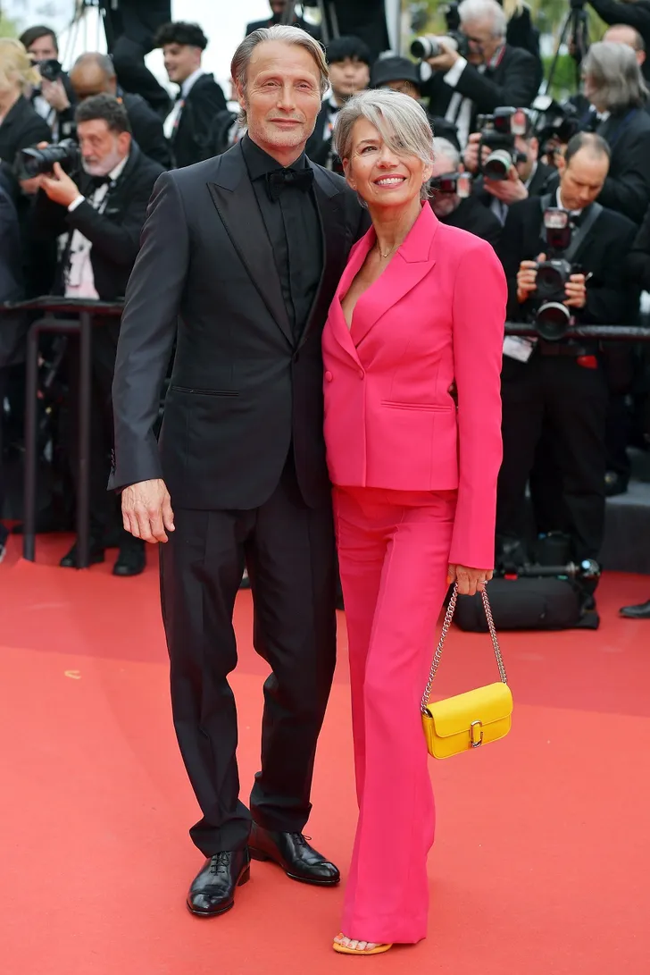 Zo kan een rode loperlook ook zijn: Mads Mikkelsen en Hanne Jacobsen in een roze powerpak #DopamineDressing