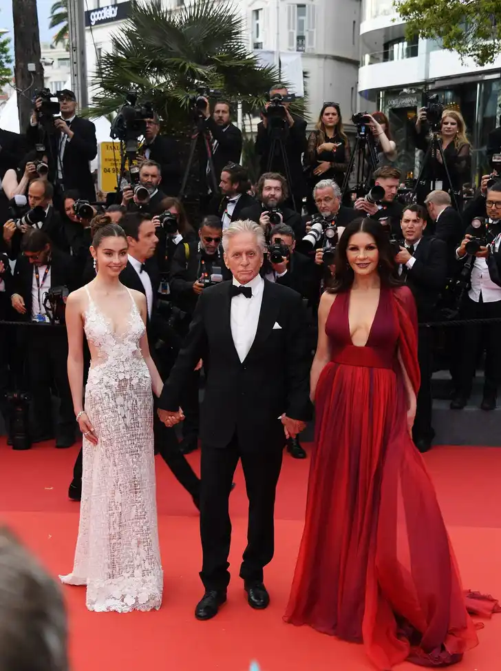 Ook Michael Douglas en Catherine Zeta Jones (in een rode Elie Saab) hadden een kind bij zich: hun dochter Carys Douglas.