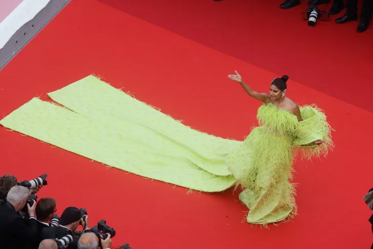 Ook een vertrouwd Cannes-gezicht is Fan Bingbing, altijd goed voor een opvallende creatie. Deze is van Christopher Bu.