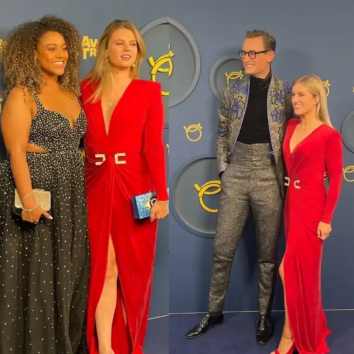 Elisabetta Franchi was als ontwerper erg in trek, Britt Dekker en Britt Scholte waren totally twinning in deze jurk (en konden er gelukkig allebei om lachen!)