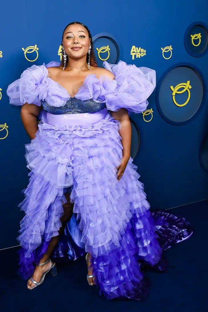Fenna Ramos in bijzondere High-Low creatie in babyblauw.