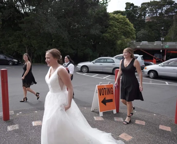 Ze is een absolute cheerleader als het aankomt op andere vrouwen empoweren. "Dit noem ik betrokkenheid," schreef ze bij deze foto. "Gefeliciteerd met je grote dag Amber Leigh Jack en dankjewel dat je ons eraan herinnert dat wat je ook aan het doen bent, er altijd tijd is om even te gaan stemmen."