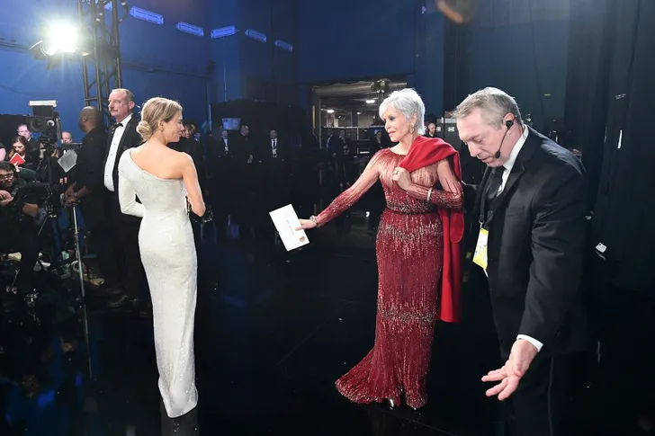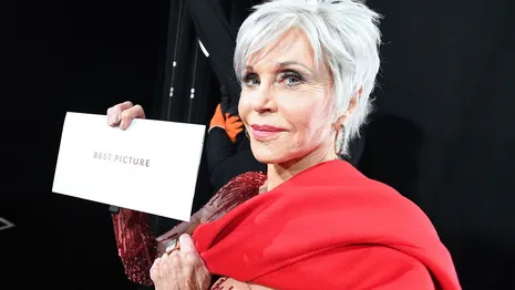 Jane (ze komt op 1:46 in beeld) heeft zelf twee Oscars, voor Klute en Coming Home. De Academy houdt politieke statements liever buiten de deur, maar ook in 1972, toen ze het beeldje kreeg voor Klute, wist ze met haar kleding net als nu een punt te maken. Ze droeg een simpel pak met een Mao-kraag. Het statement was tweeledig: deels anti-Vietnamoorlog protest en deels steun voor de emancipatiebeweging. Destijds zei ze erover "dat ik me niet kleed voor mannen." Jane Rocks.