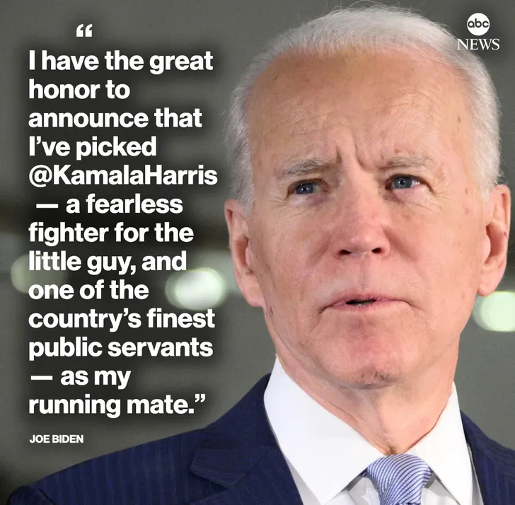 Amerikaanse Democratische presidentskandidaat Joe Biden heeft bekendgemaakt dat Kamala Harris - Nouveau tipte haar al - zijn running mate wordt.