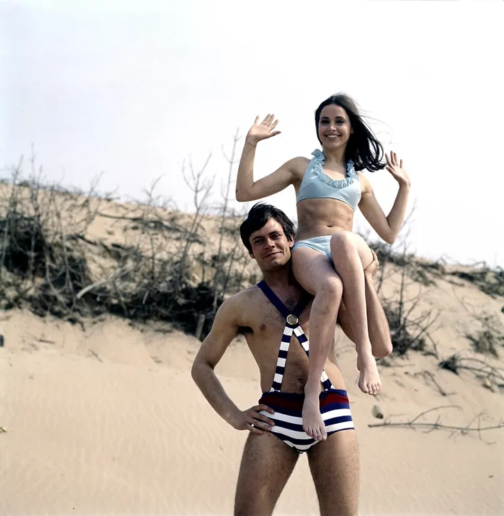 1968, Rob in een mankini met zijn eerste echtgenote Elly Hesseling.