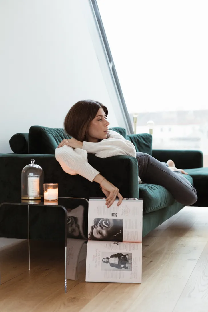 "Het is een prachtig appartement met veel ramen en licht," zegt ze. "Ik heb de neiging alle hoeken te meubileren. Mijn vriend wil echter juist alles zo minimalistisch mogelijk. De gouden middenweg is luchtig en ruim, maar wel een fluweelzacht tapijt zodat het gezellig is."
