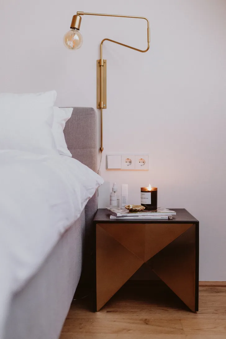 "Vroeger hield ik veel meer van hotelbedden dan van mijn eigen bed," zegt Vicky. "Maar sinds we onze mooie boxspring hebben, is dat het hoogtepunt van thuiskomen." Geurkaarsje erbij, niets meer aan doen.