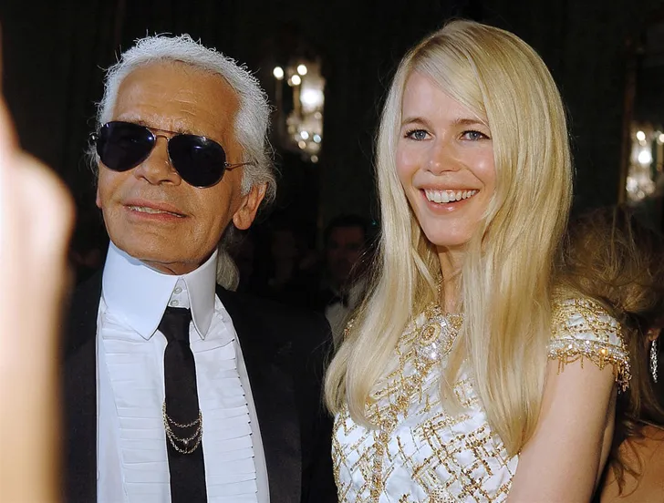 Lagerfeld, hier met Claudia in 2006, hielp haar niet alleen in het begin van haar carrière, maar ook later, zodat ze ook als veertiger nog volop in het modellenwerk zat. "We roepen nu wel hard dat leeftijd er niet toe doet, maar het is nog niet zo lang geleden dat je carrière als model op je 25ste voorbij was omdat ze je te oud vonden," zegt ze. "Het is goed dat daar verandering in is gekomen. Alle leeftijden zouden vertegenwoordigd moeten zijn in fashion."