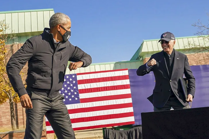 Met oud-collega Barack Obama. Toen die president was, was Joe als vicepresident de grappenmaker.