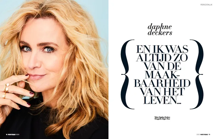 Daphne Deckers schreef voor het nieuwe nummer een persoonlijk en heerlijk relativerend essay over de impact van COVID-10 op haar leven: " Voor een Zoom-meeting wil ik nog wel een knap bovenkantje aantrekken, maar als niemand mijn benen ziet, houd ik gewoon mijn pyjamabroek aan."