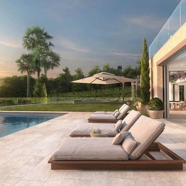 ...én een heerlijk zwembad. We zouden eraan kunnen wennen!