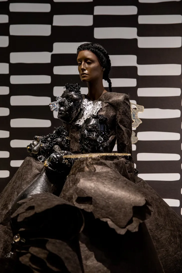 Van zwarte ontwerpers wordt vaak gedacht dat ze vooral streetwear ontwerpen. Om dat stereotiepe te doorbreken, opent Voices of Fashion met met circa dertig couturestukken, waaronder een installatie van Thebe Magugu.