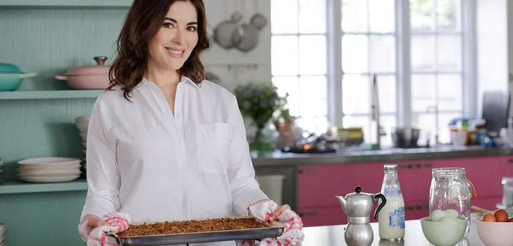 Voor het eerst in drie jaar brengt Nigella Lawson een nieuw kookboek uit: Cook, Eat, Repeat. Het is een verrukkelijk persoonlijk werk, waarin ze getuigt van haar liefde voor 'bruin eten' (niet populair in kookboeken, omdat het weliswaar vaak verrukkelijk is, maar niet mooi fotografeert). Maart het verhaalt ook een beetje melancholisch over de keuken als veilige plek in turbulente tijden.